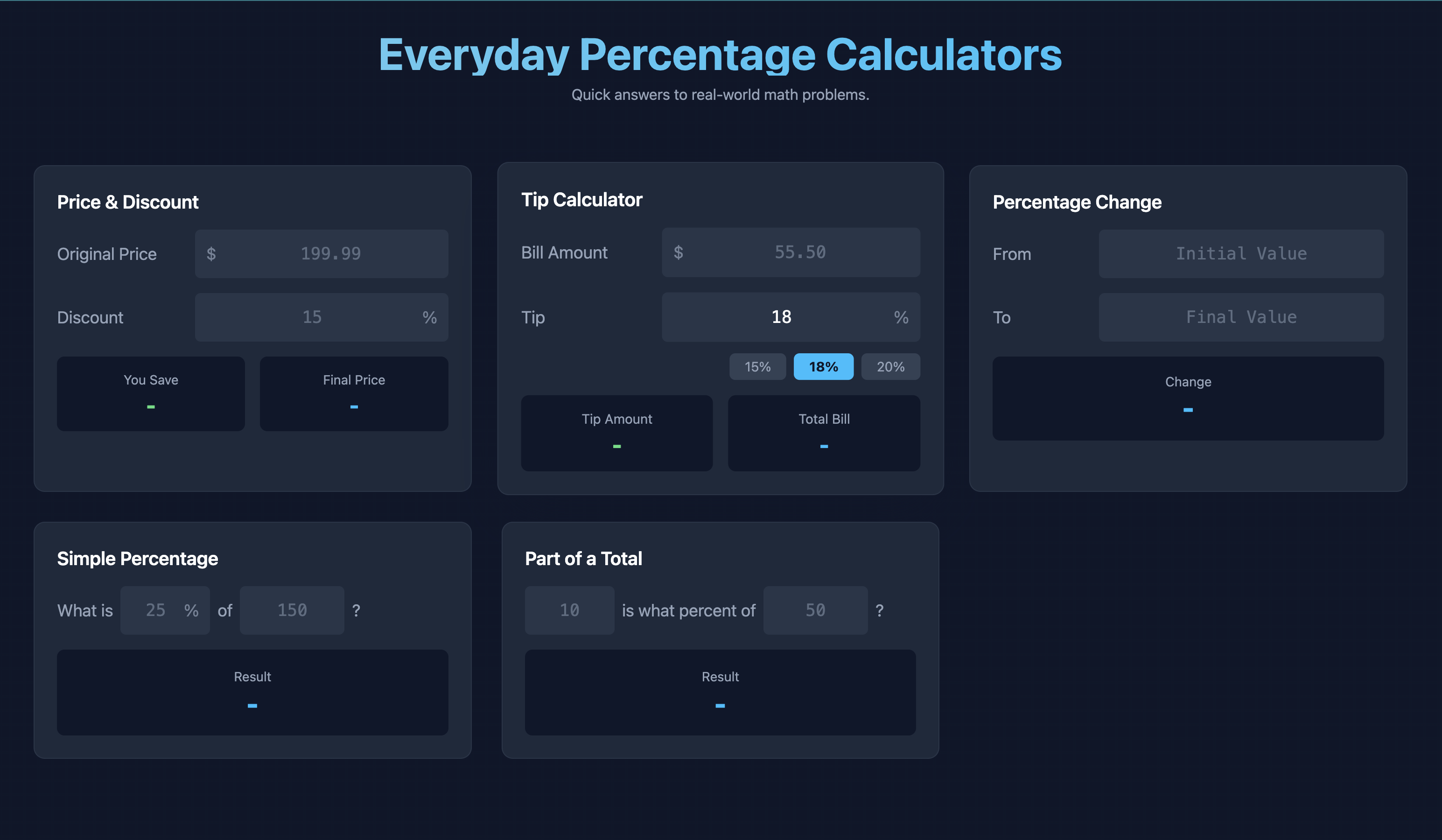 A simple mobile-first set of calculators used by more than 100K users/month due to it’s simplicty