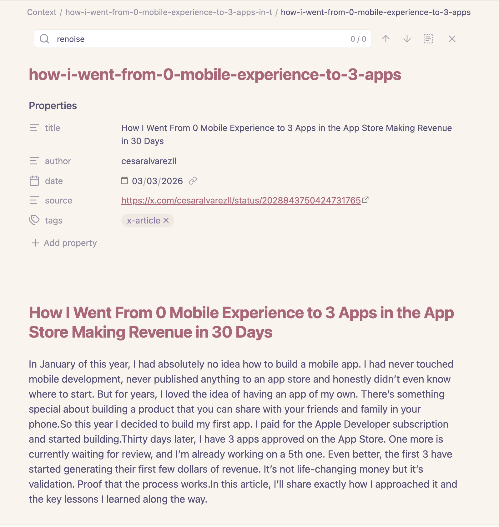 I built an X-to-Obsidian button (and it quietly fixed my AI notes)